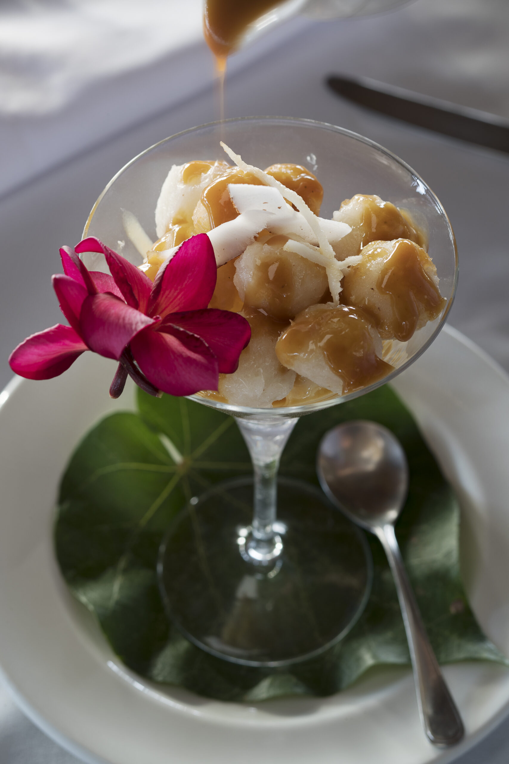 Our specialty is seafood, freshly caught off the resort, and served alongside tropical fruits and vegetables organically grown in our own gardens. Our commitment to sustainability extends to our food as well, with a focus on locally sourced ingredients, herbs, and spices that celebrate the vibrant flavors of the South Pacific.